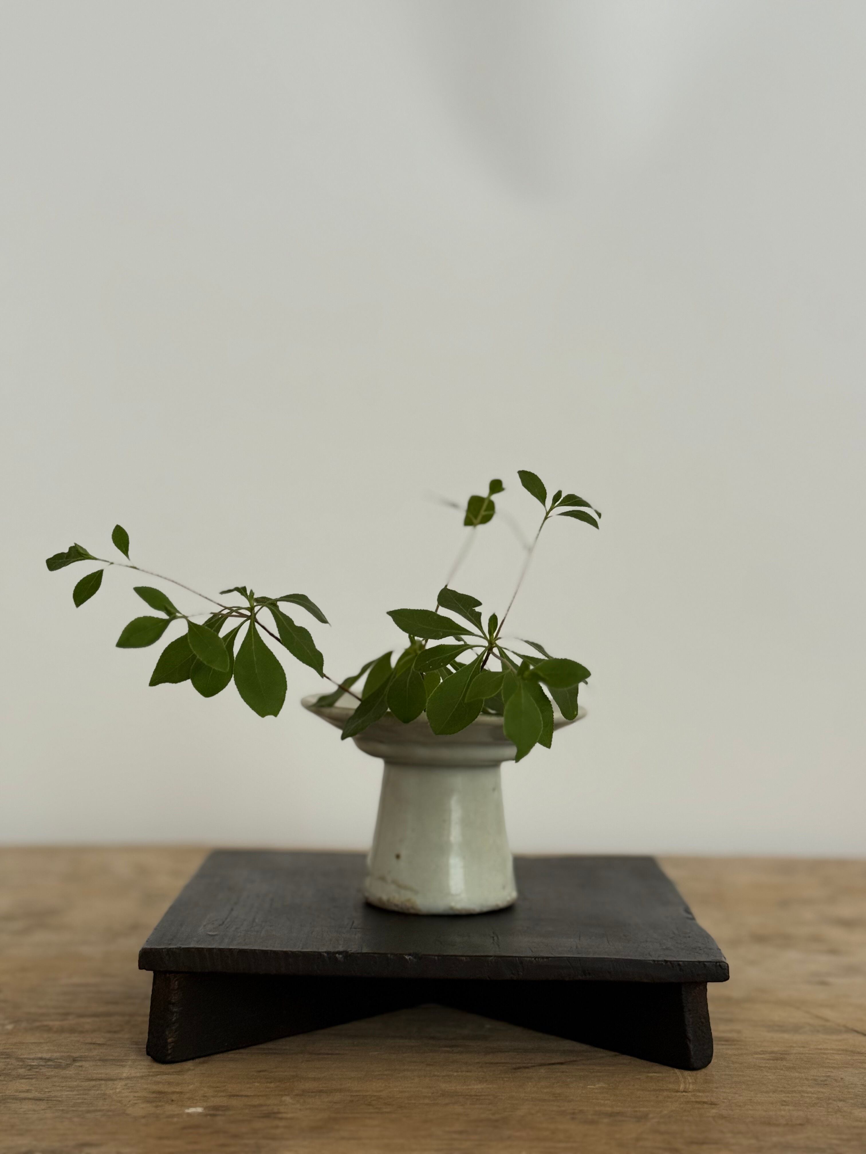 供物や菓子をのせる伝統的な器として親しまれてきた形ですが、現代の暮らしでは一輪挿しや香立て、そして苔玉の台座としてもその美しさを発揮します。