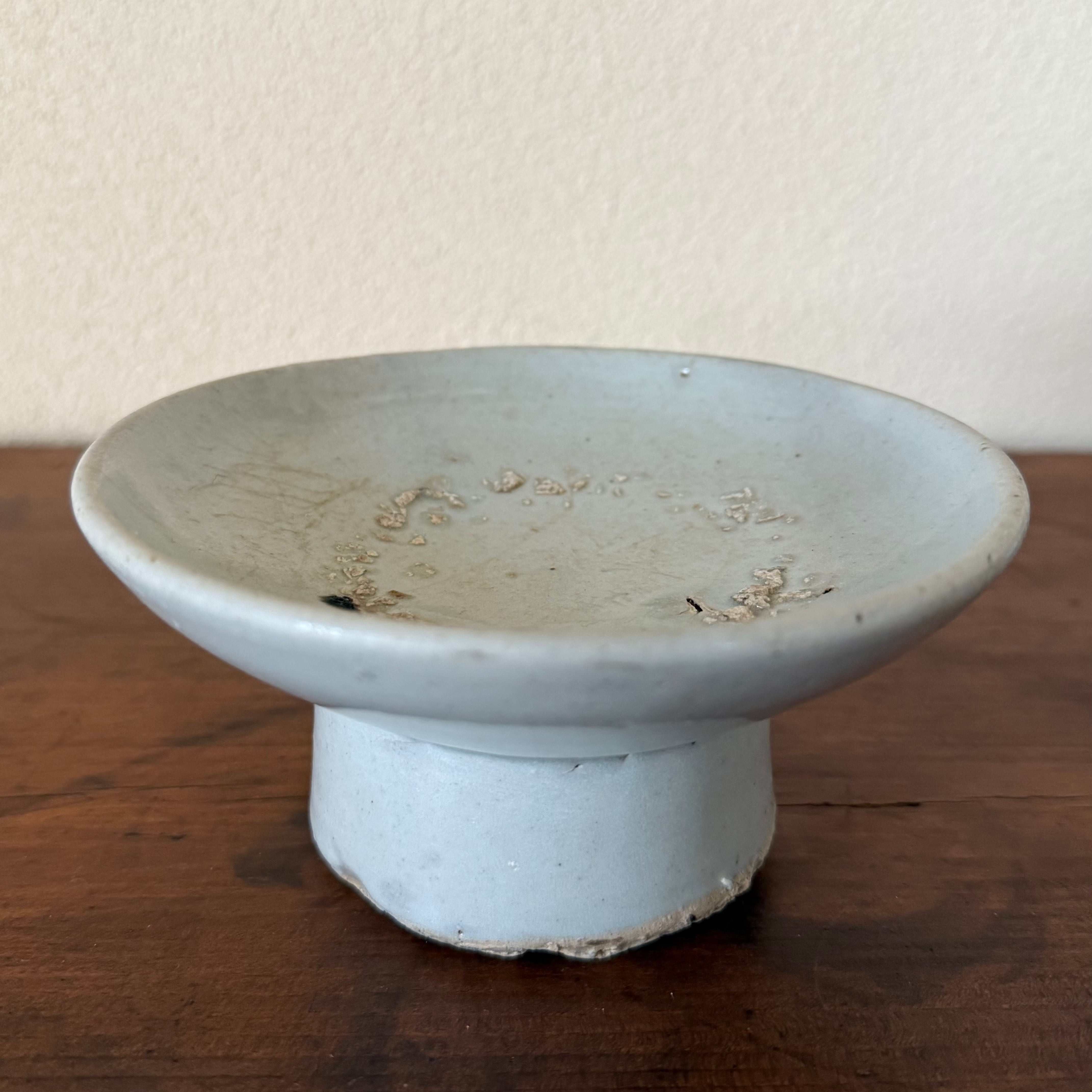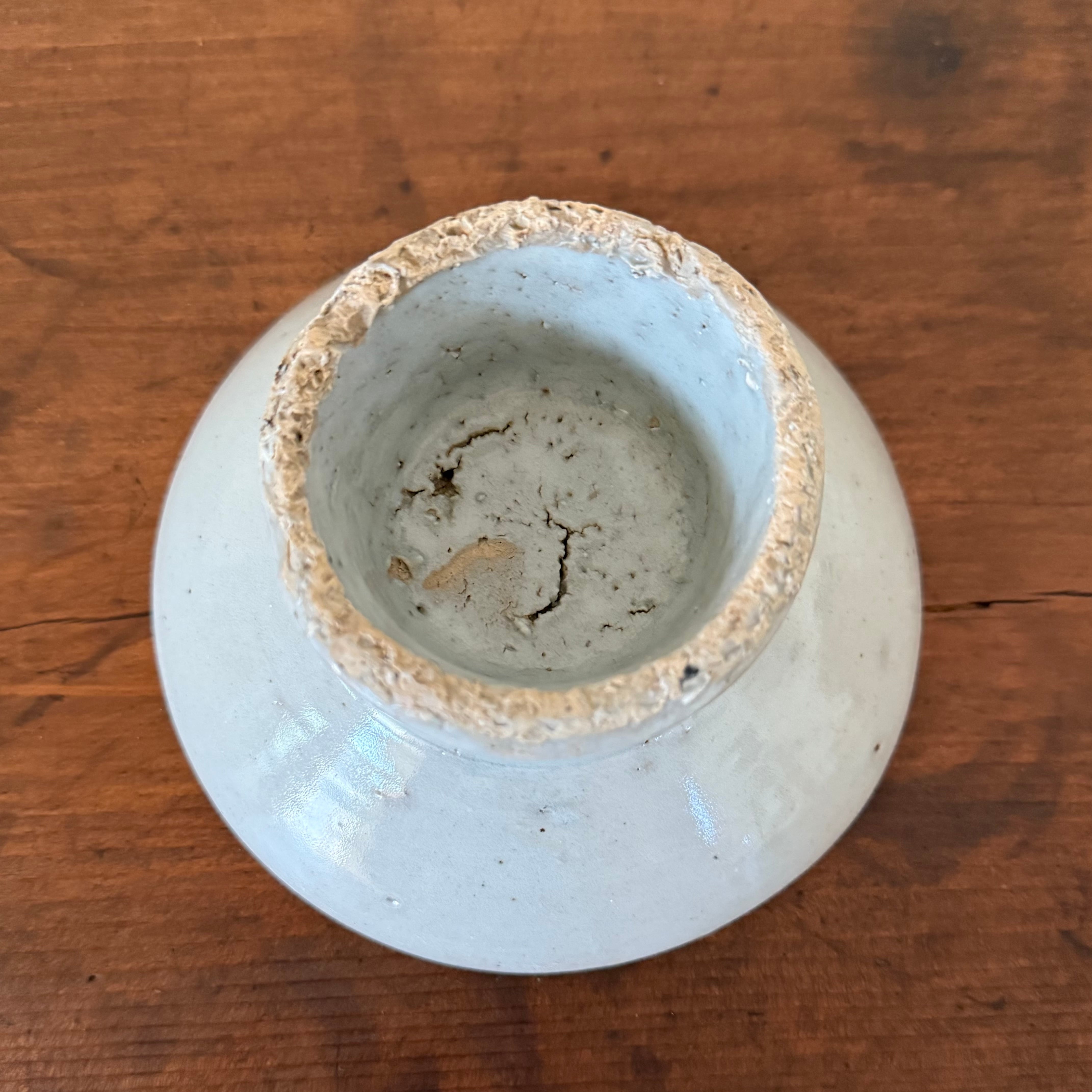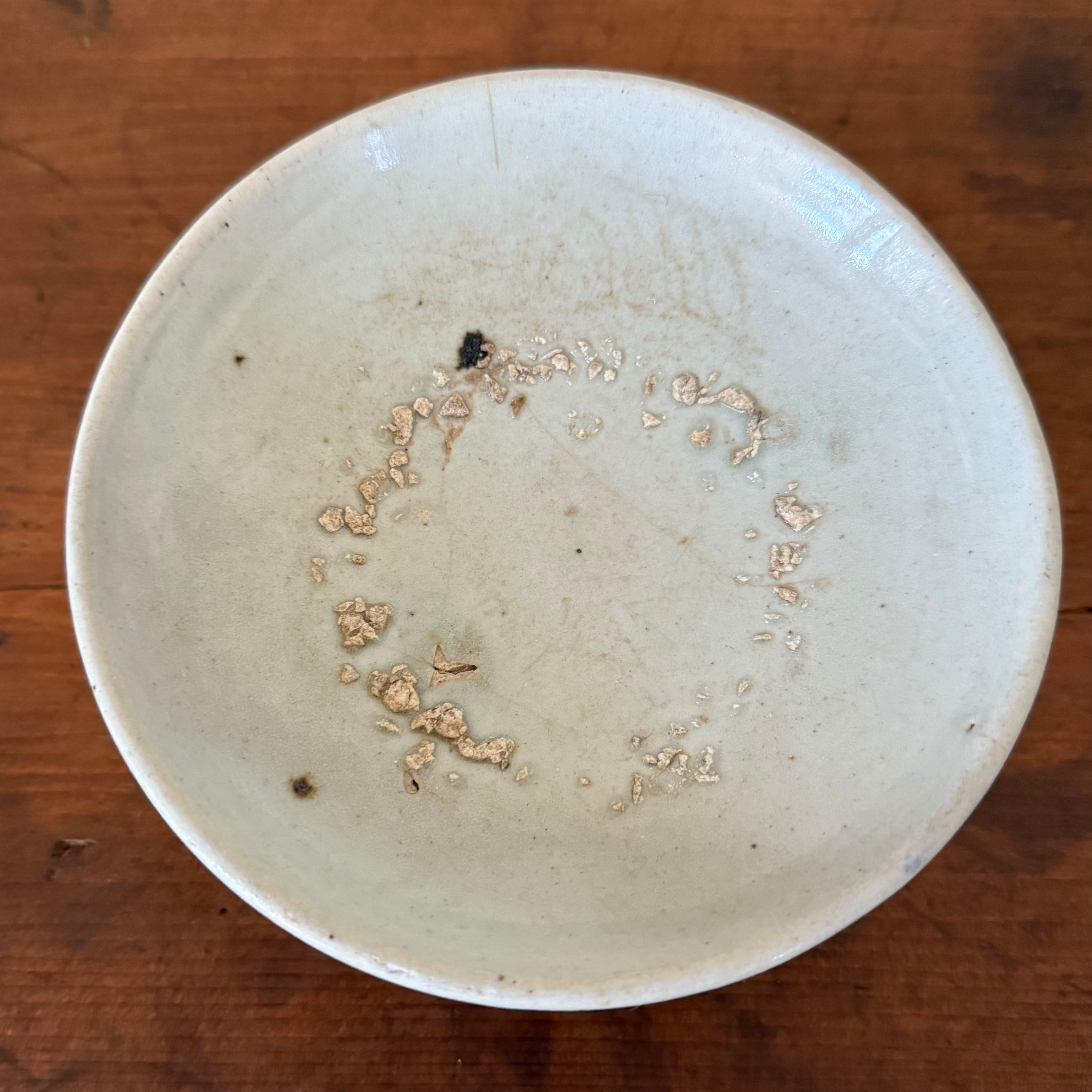 内側に見られるざらつきや釉薬の剥がれは、焼成時に重ね焼きされた際に生じたものであり、不良ではありません。古陶ならではの風合いとしてお楽しみいただけますと幸いです。