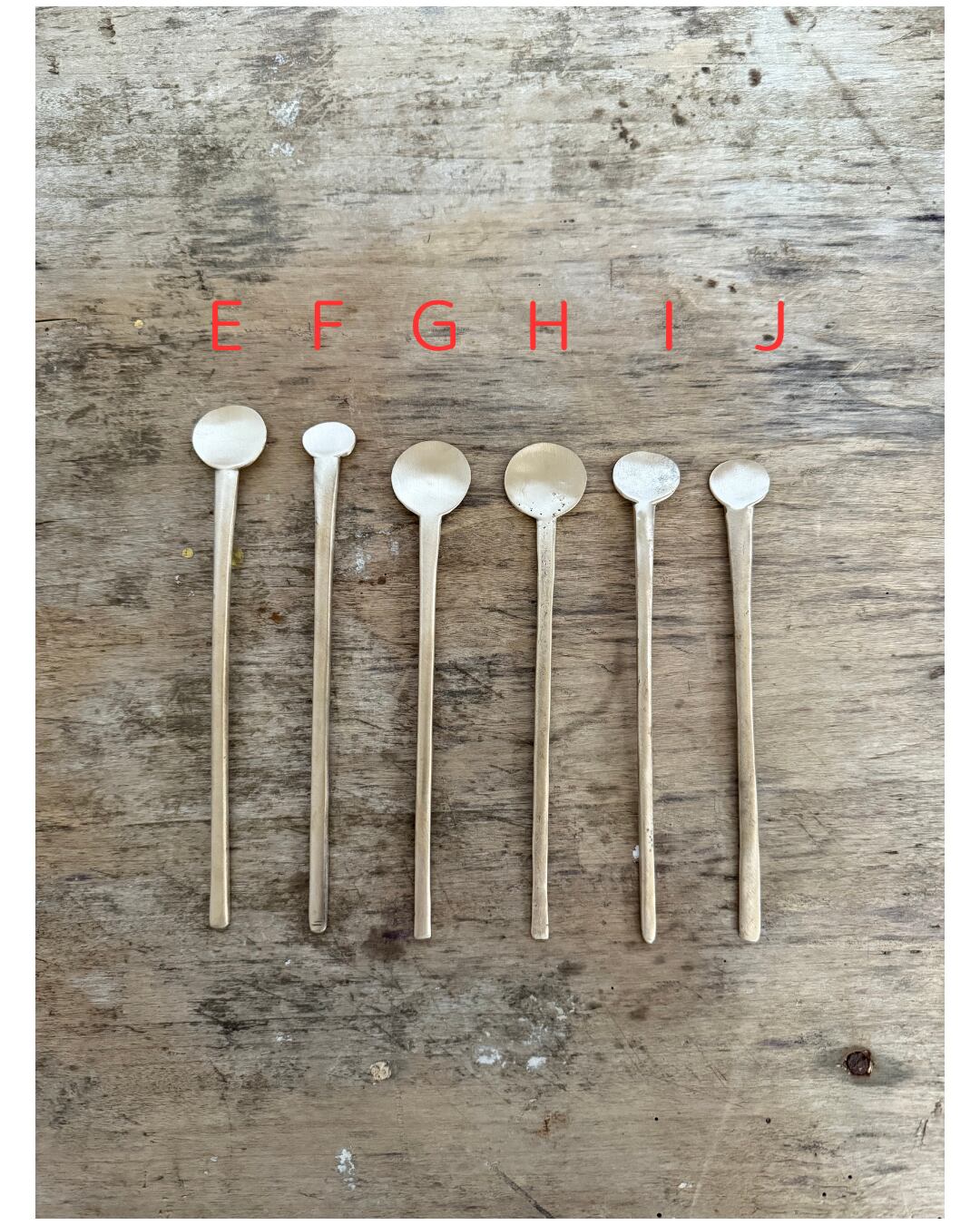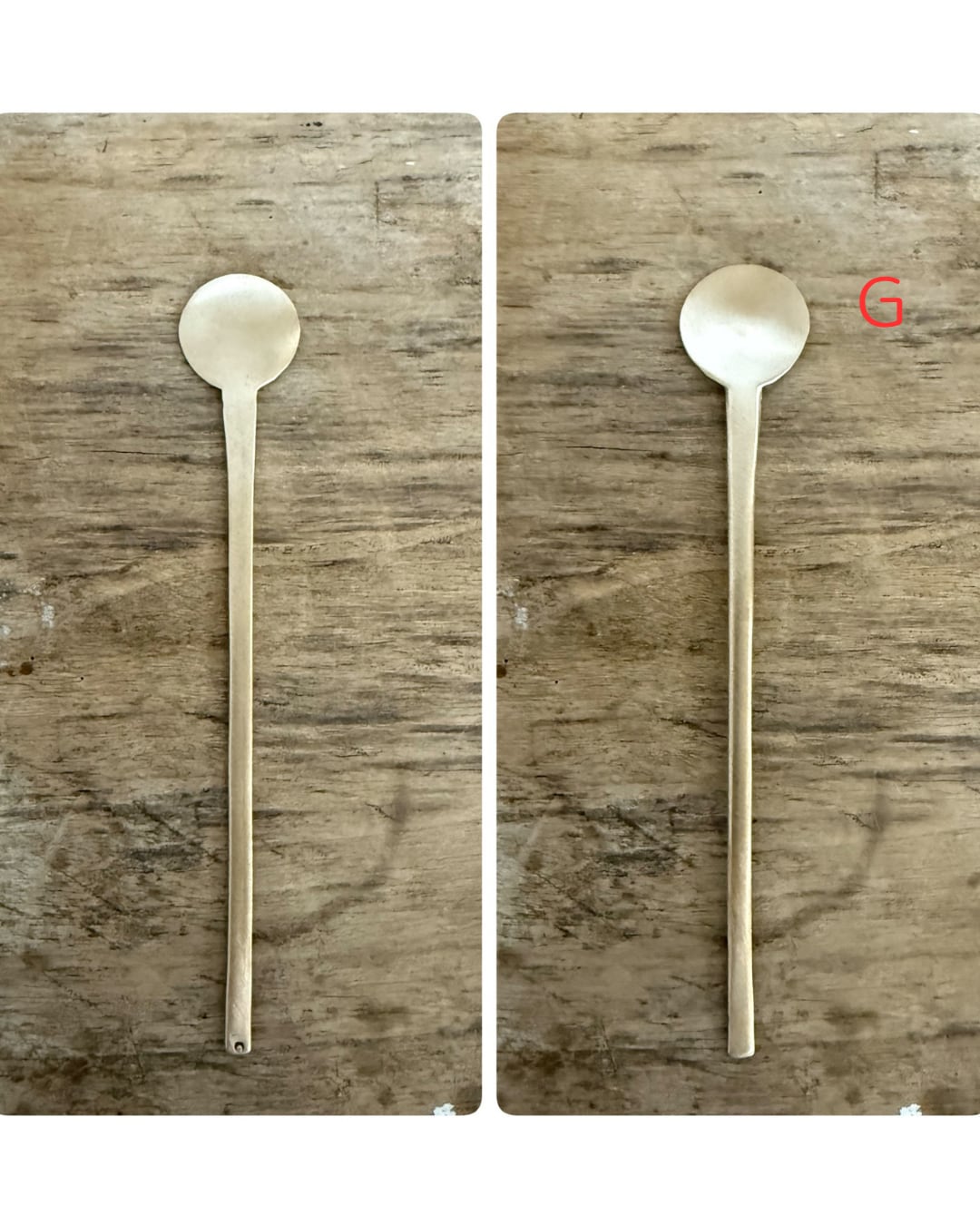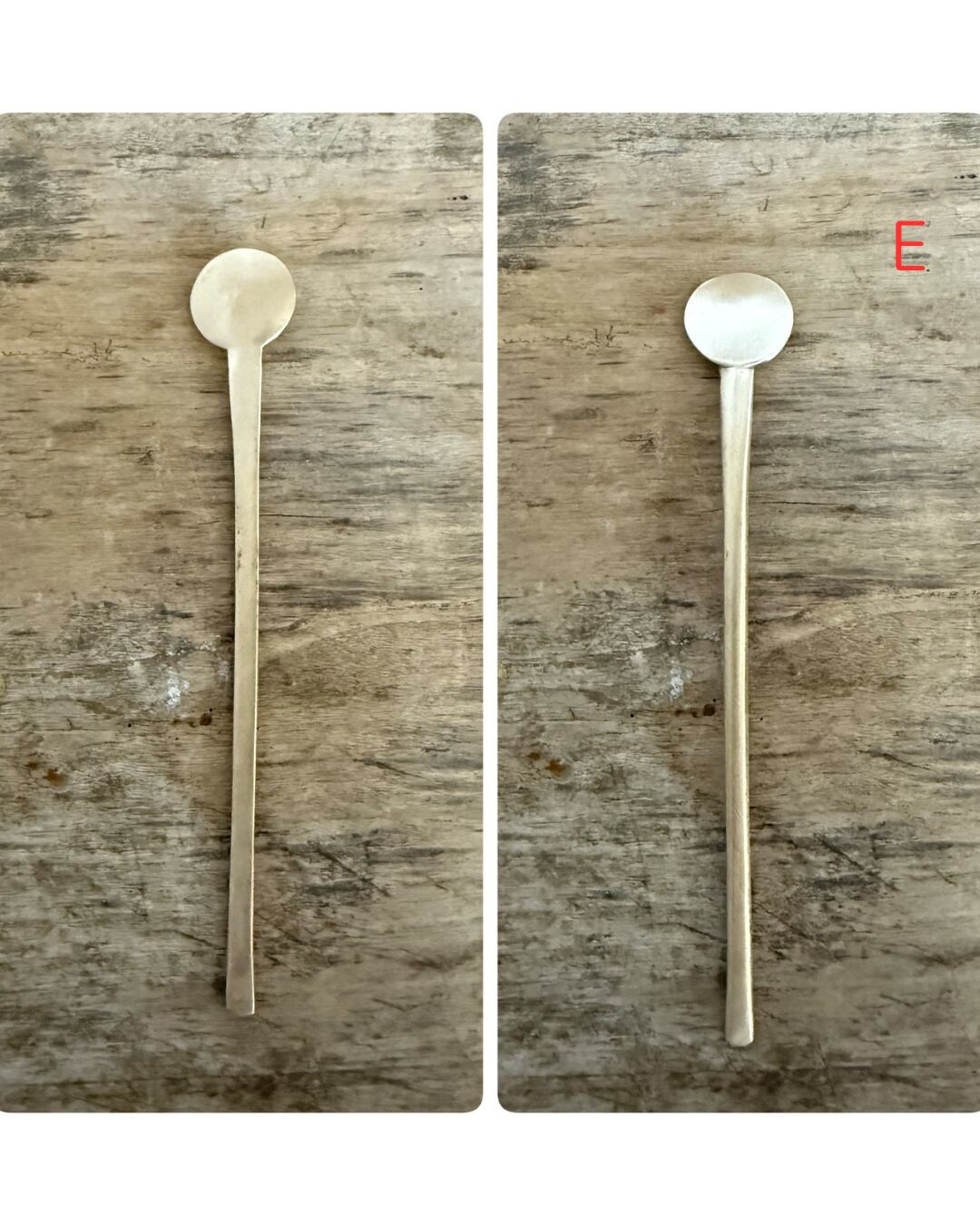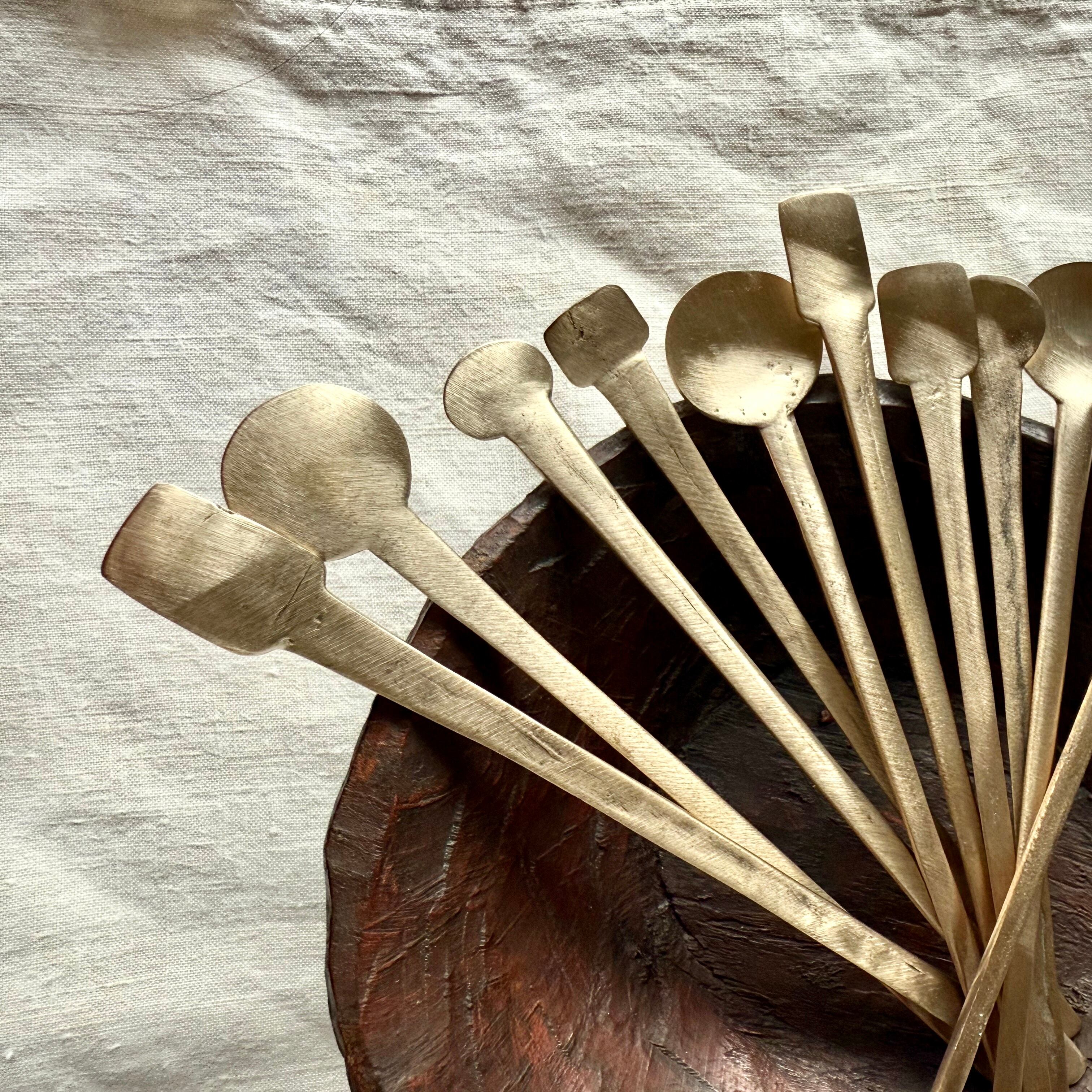 それぞれ少しずつかたちの違う、真鍮のちいさな匙。