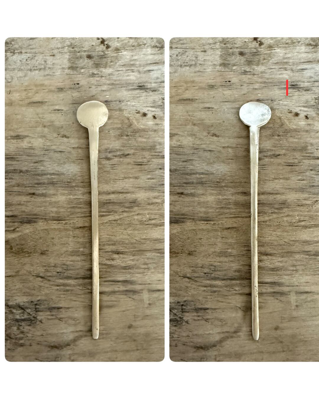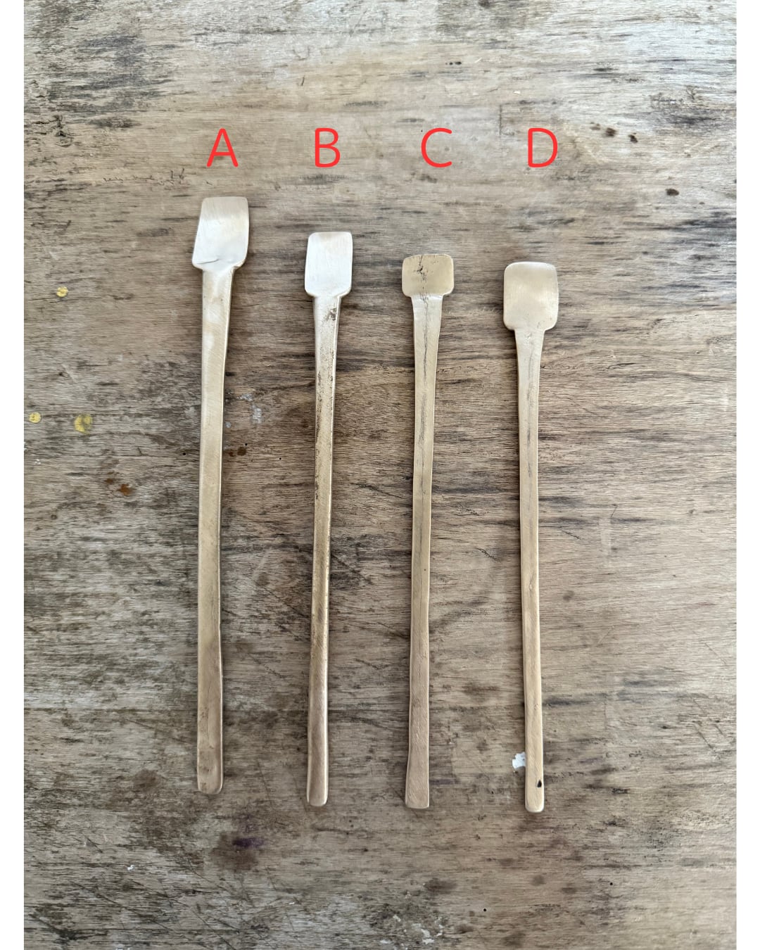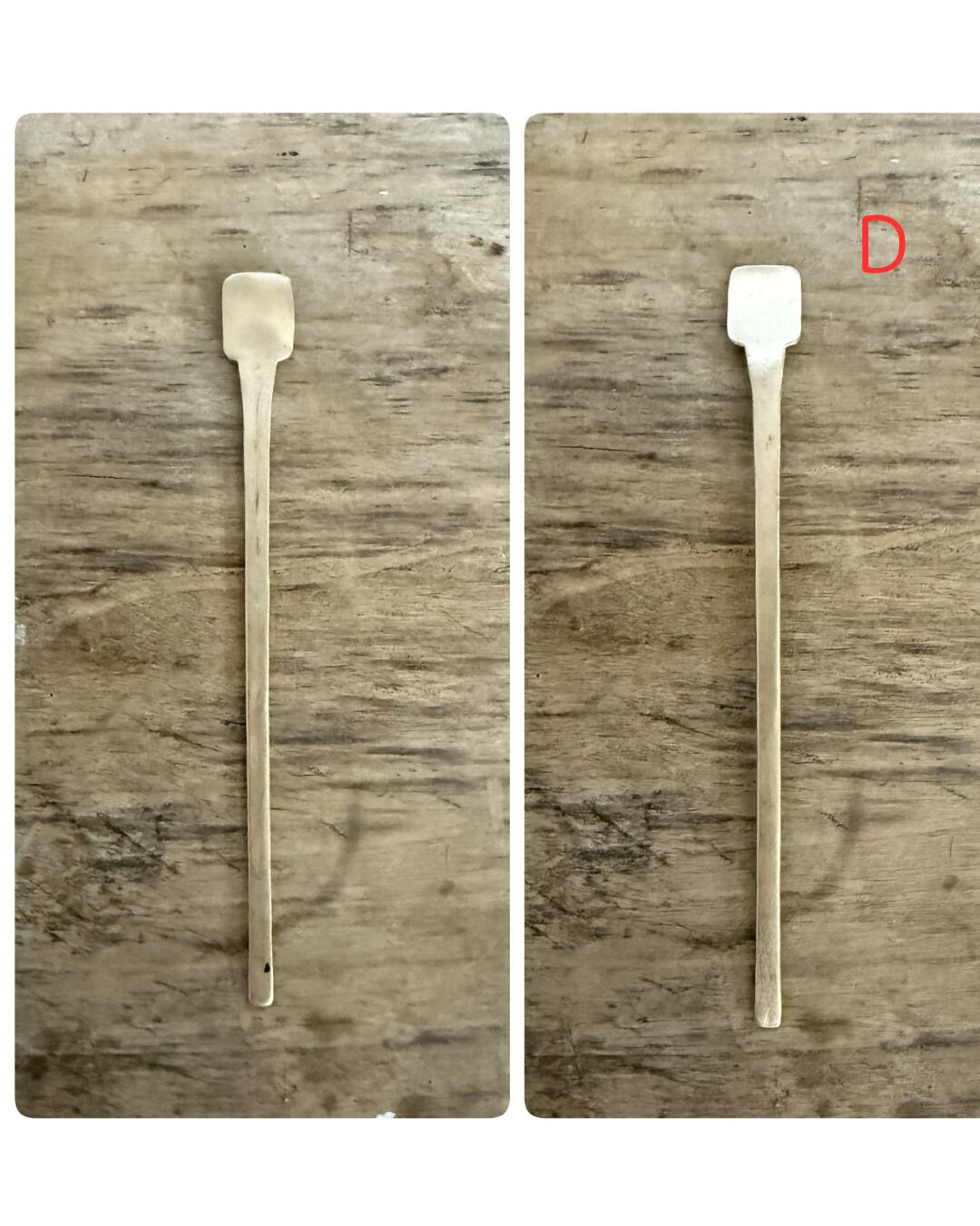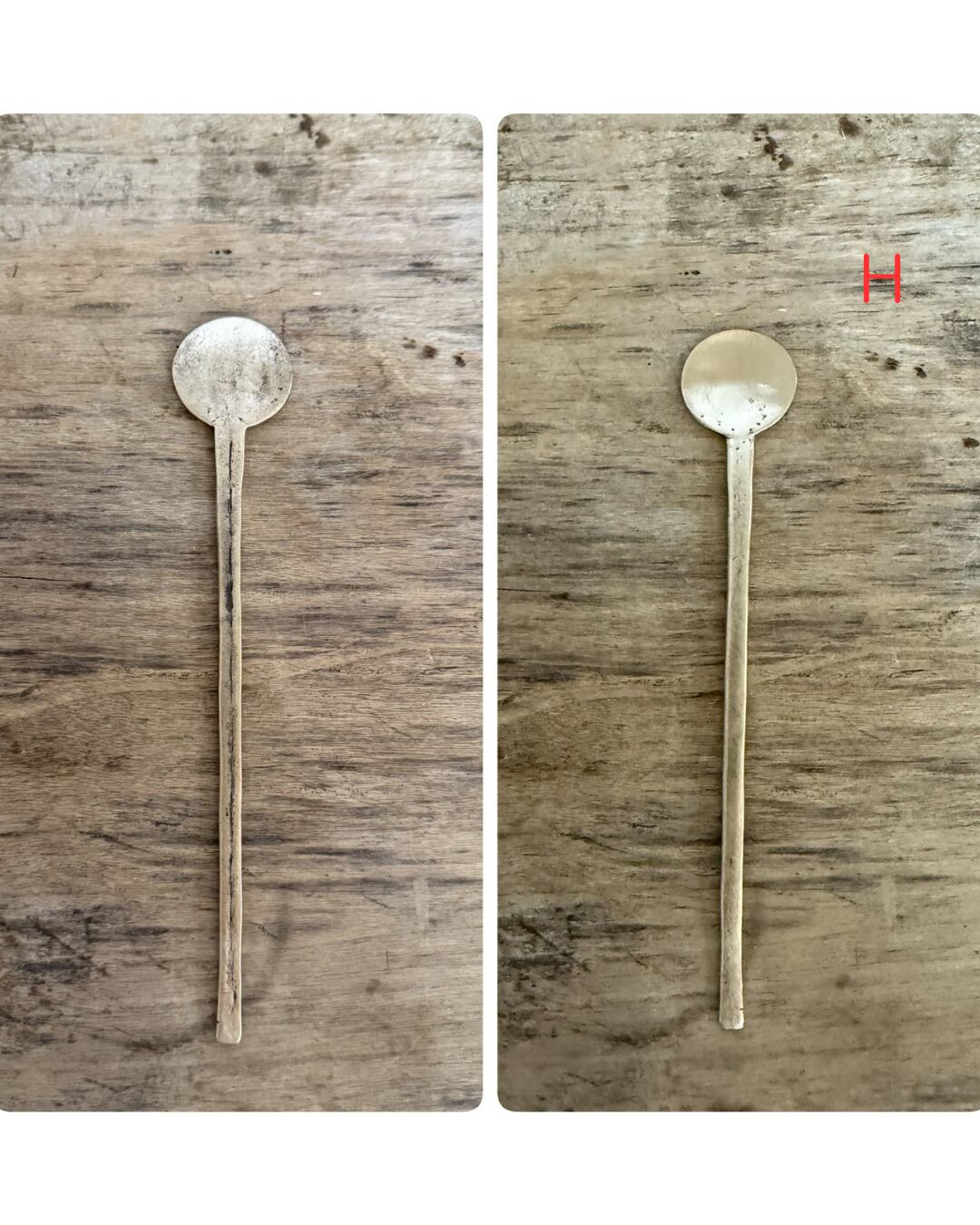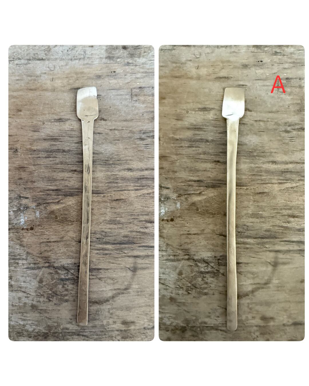 それぞれ少しずつかたちの違う、真鍮のちいさな匙。