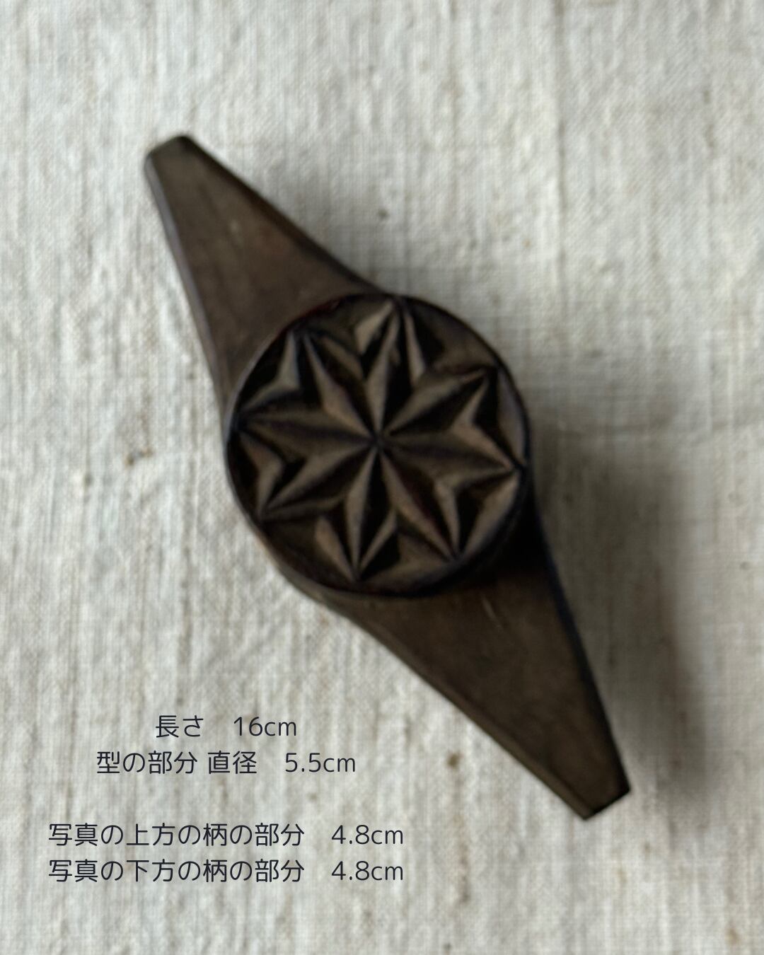 サイズ 長さ16cm ・ 型の部分 6cm / 5.5cm ・ 柄の部分 長さ 4.8cm