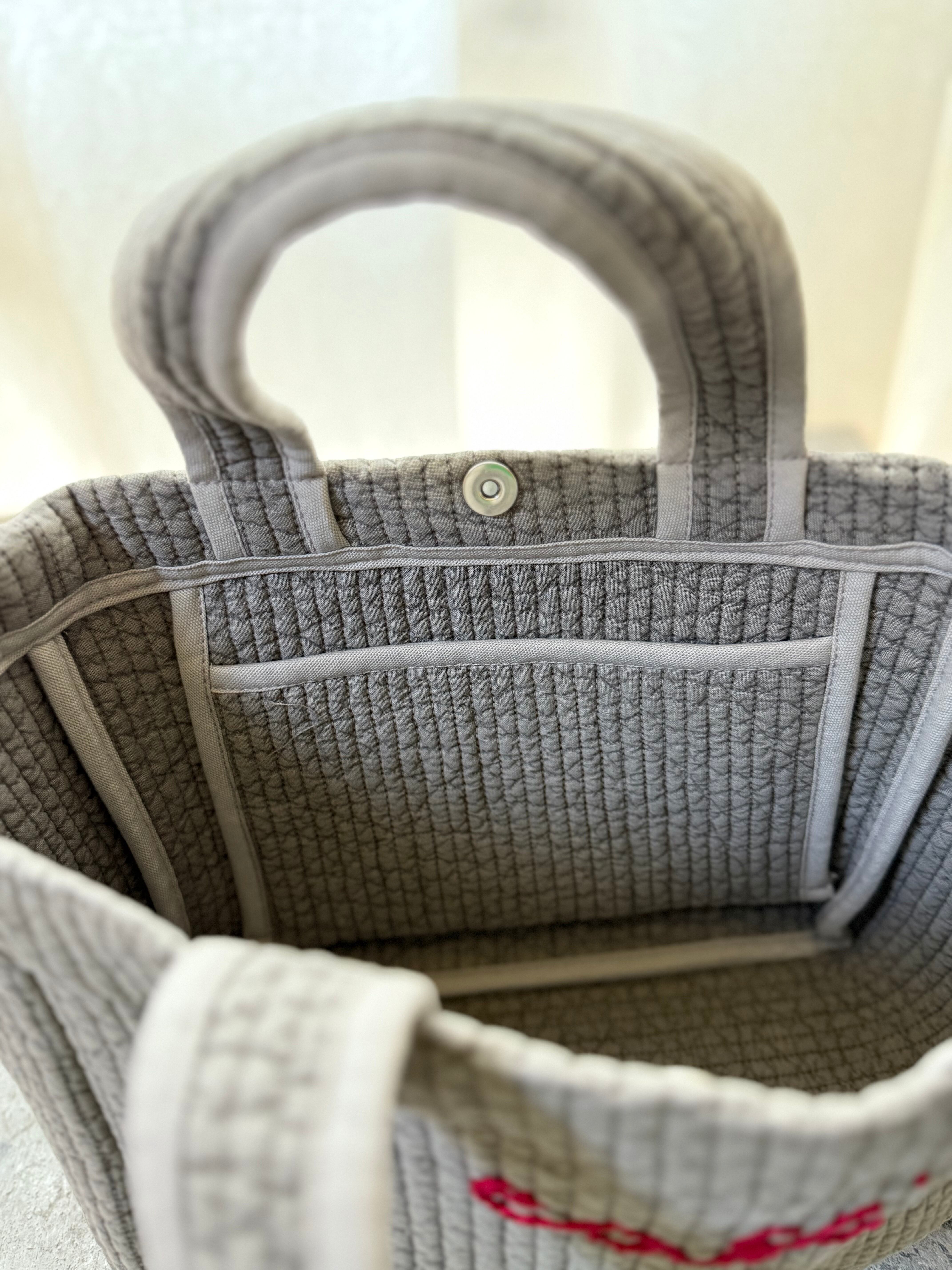 bespokesticherさんの刺繍入りヌビバッグ。