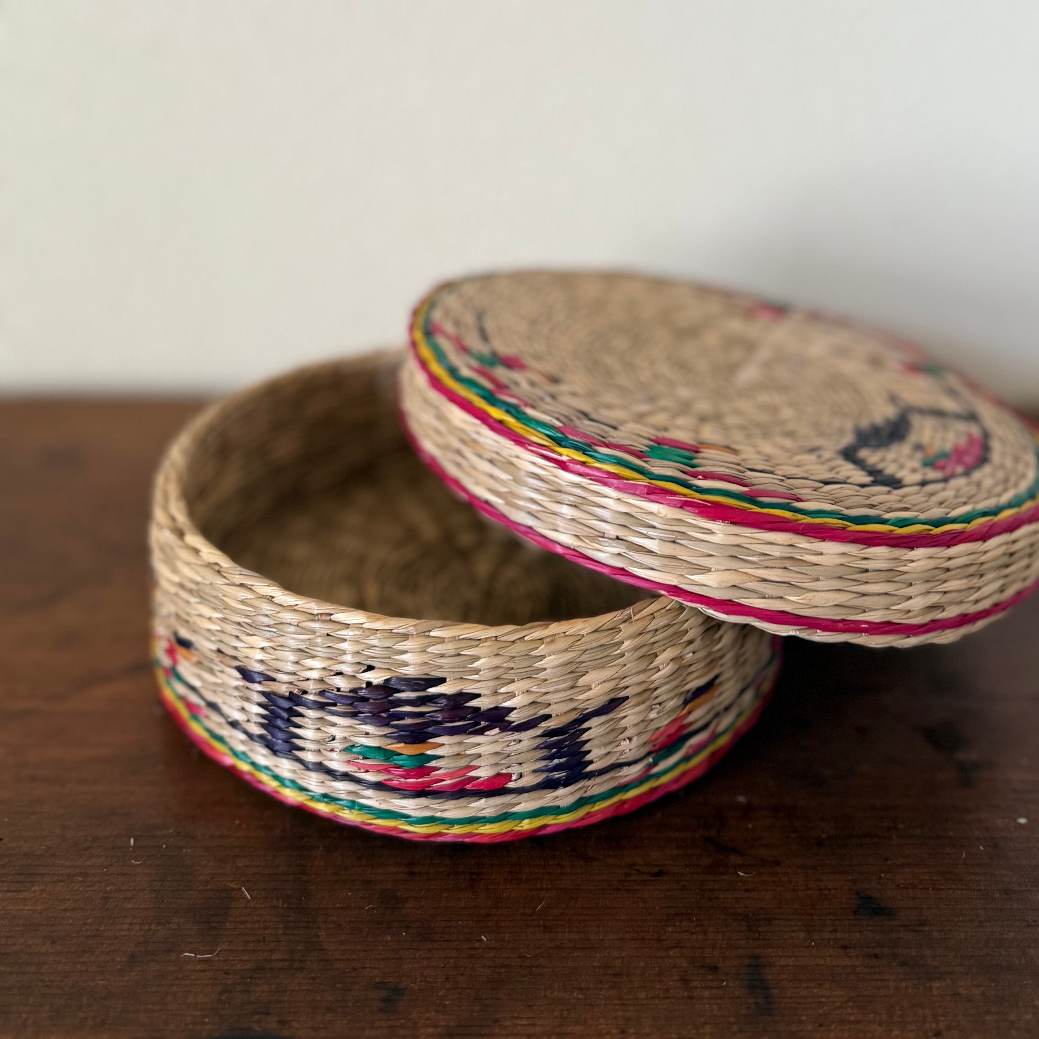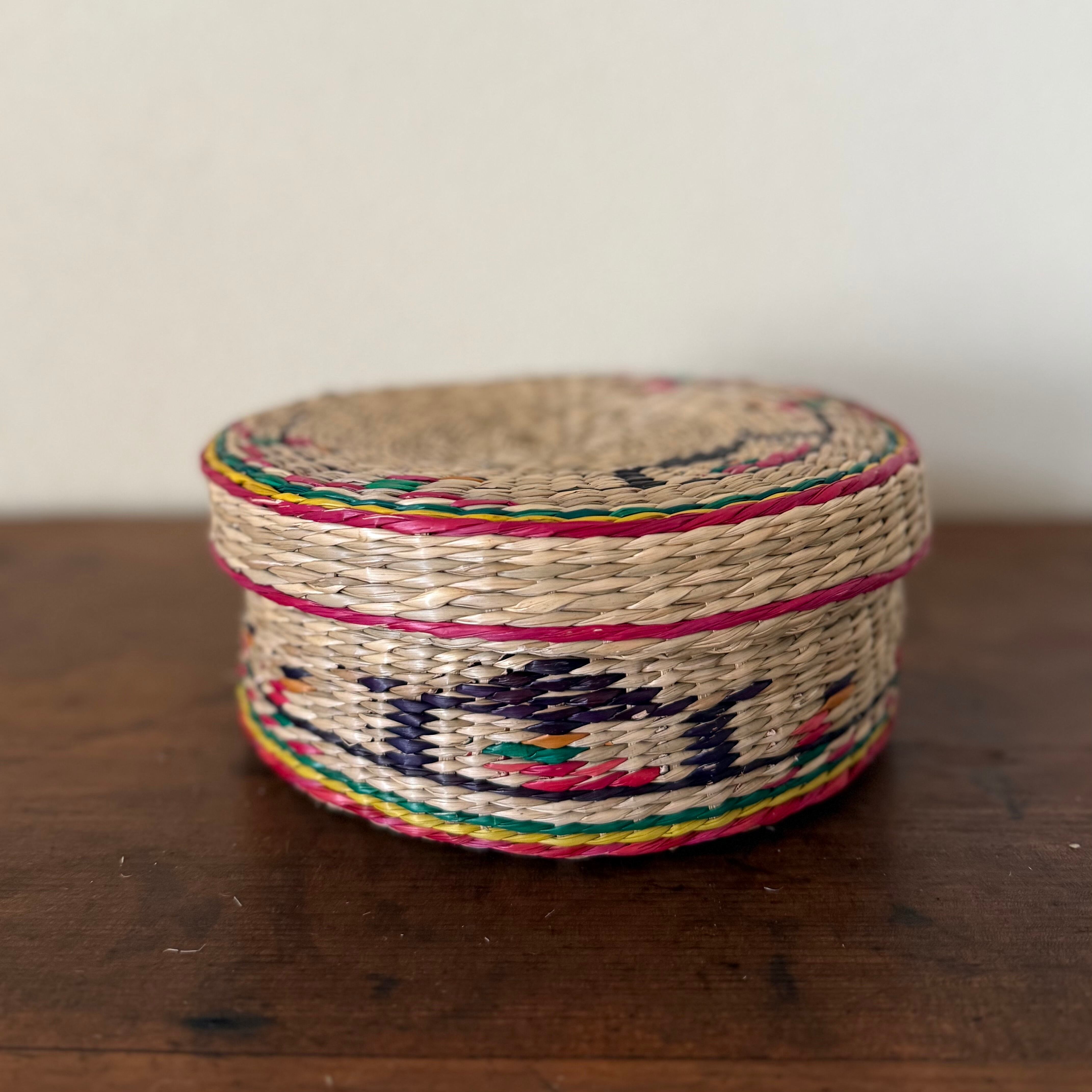 韓国で約20前に作られた、手編みのフタ付き小物入れです。