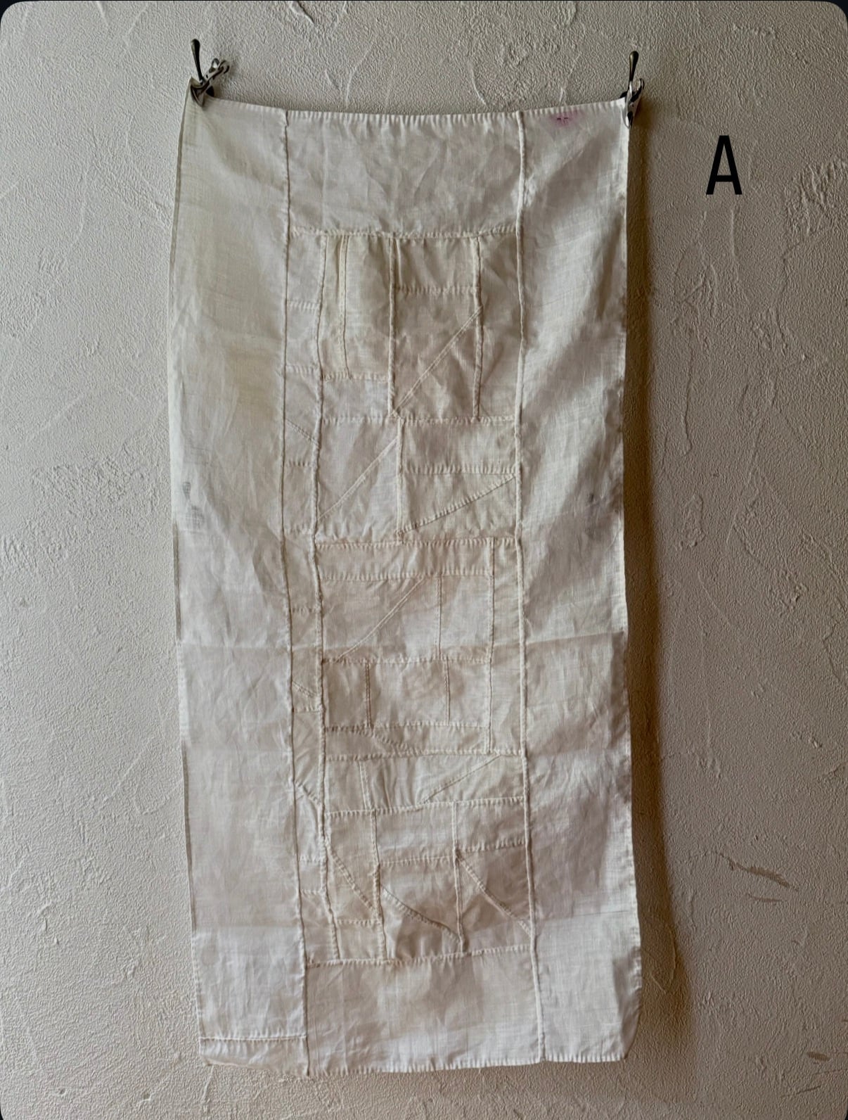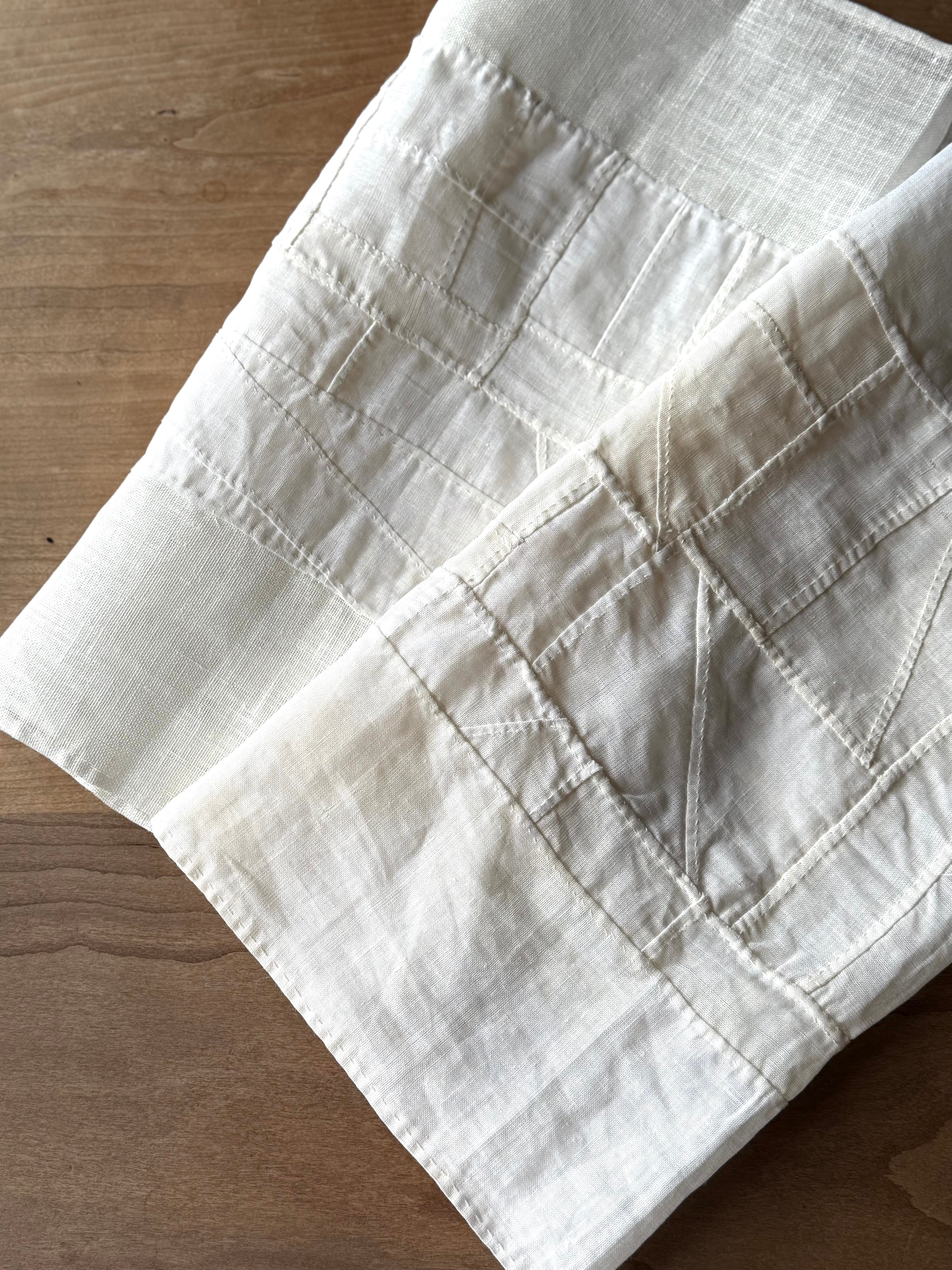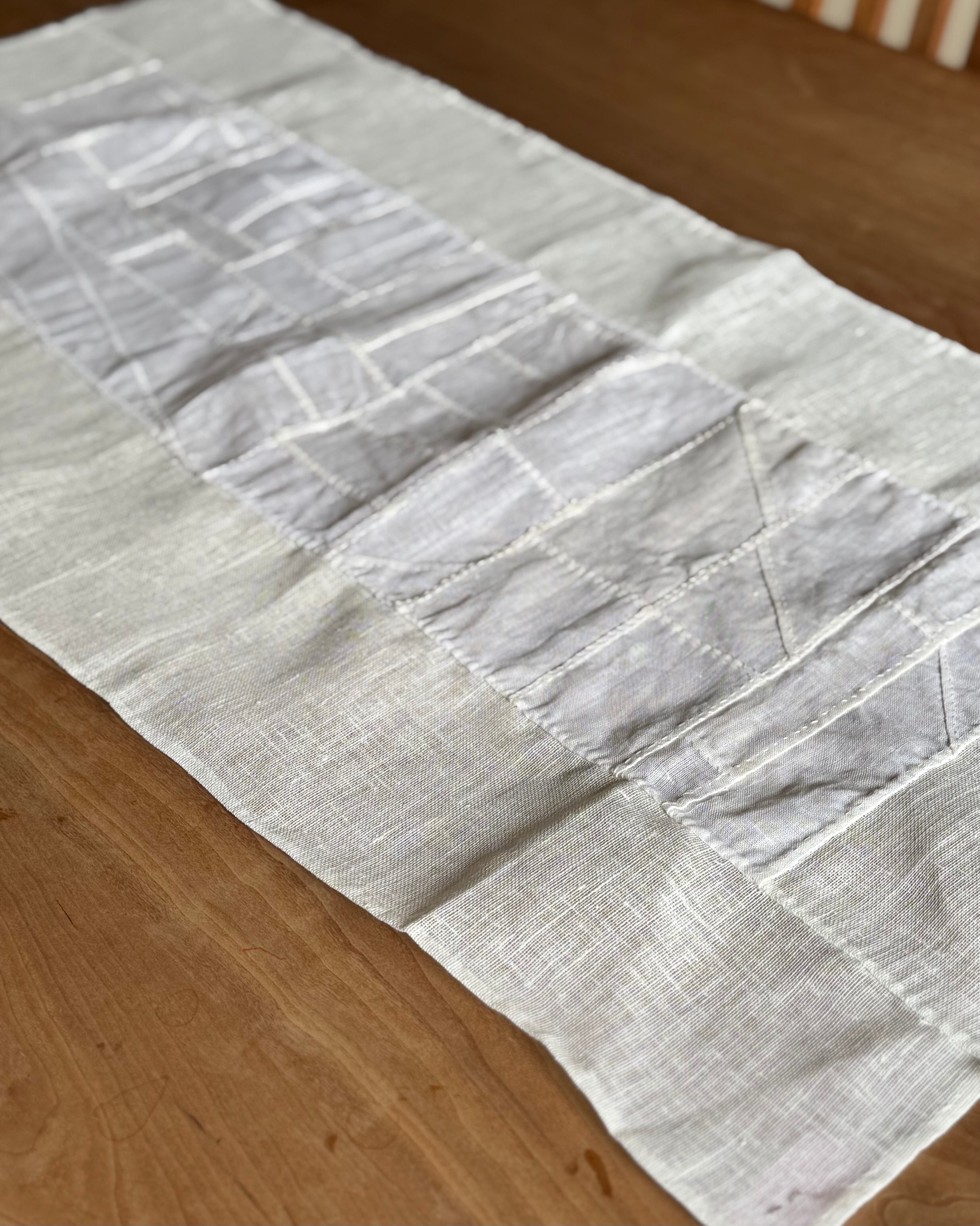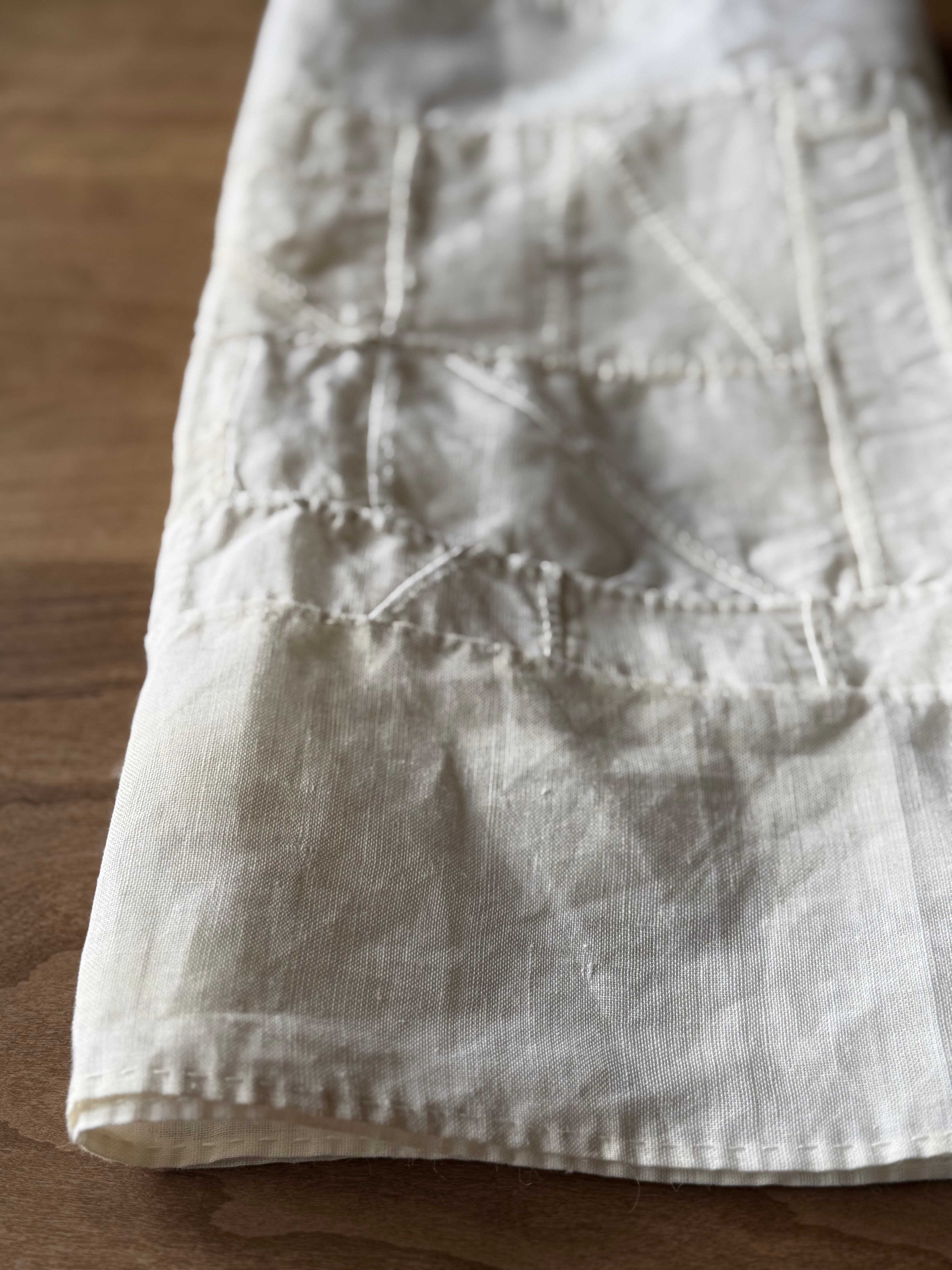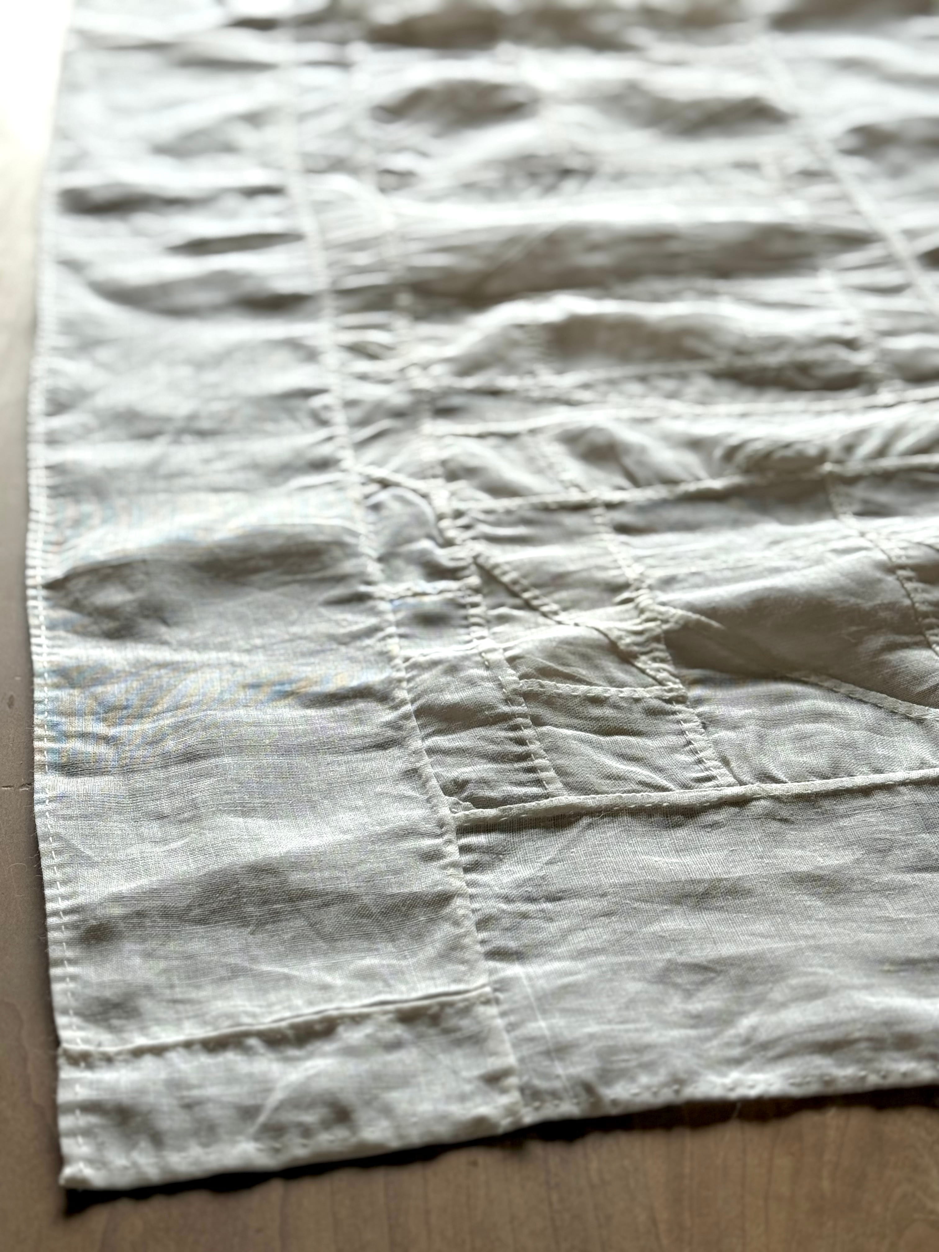 骨董店の店主が作っている生成りの布を幾重にも縫い合わせて生まれたポジャギ