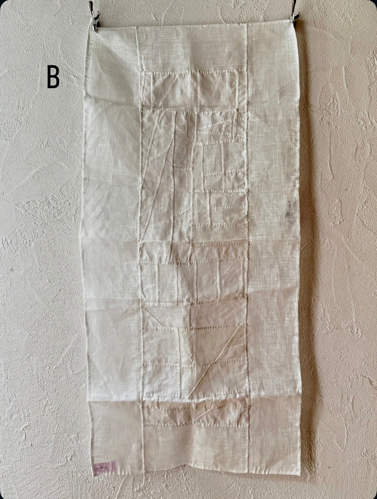 透け感のある素材なので窓辺に掛けると光をやわらかく透かし縫い目の模様が影となって映ります