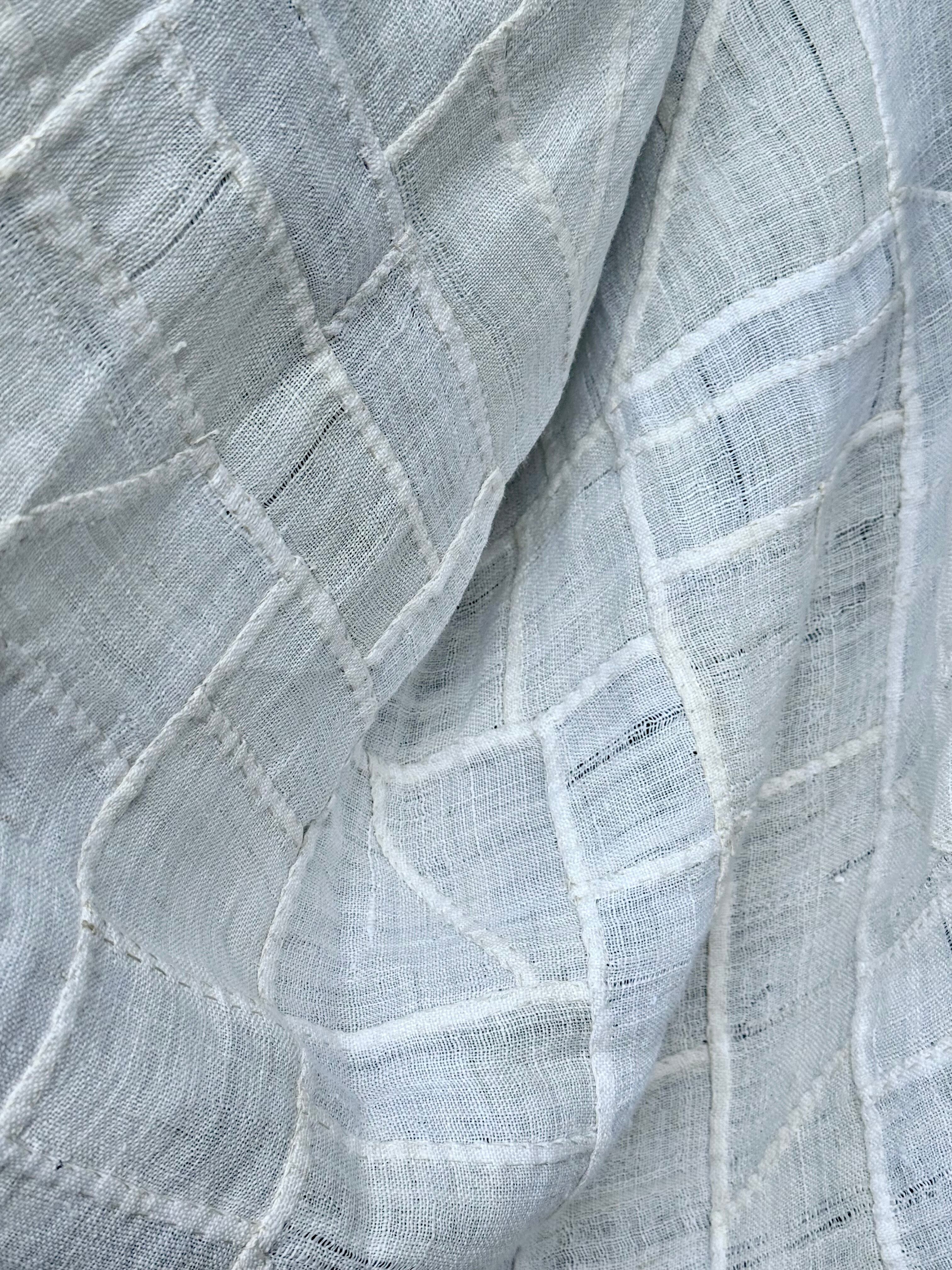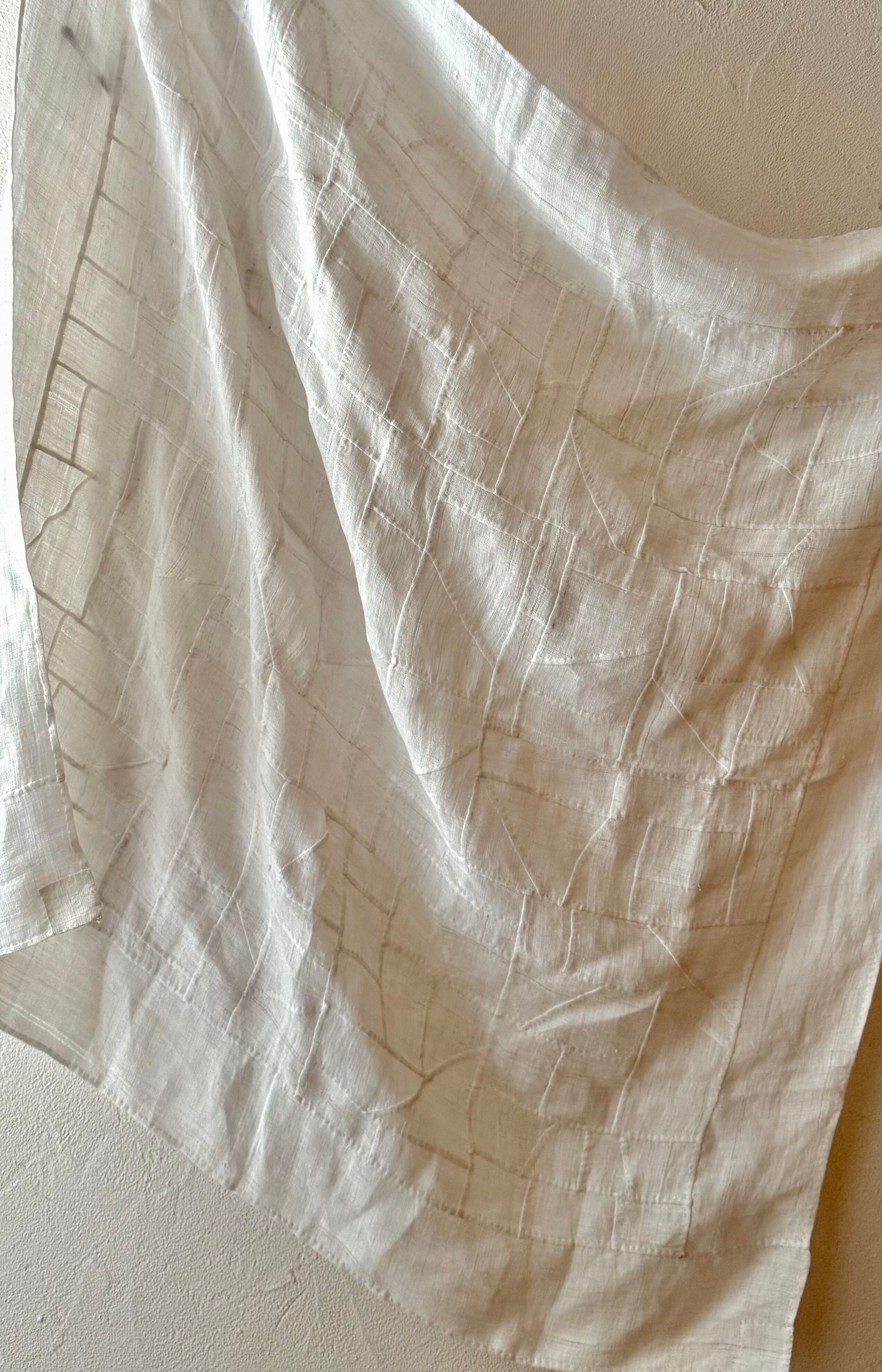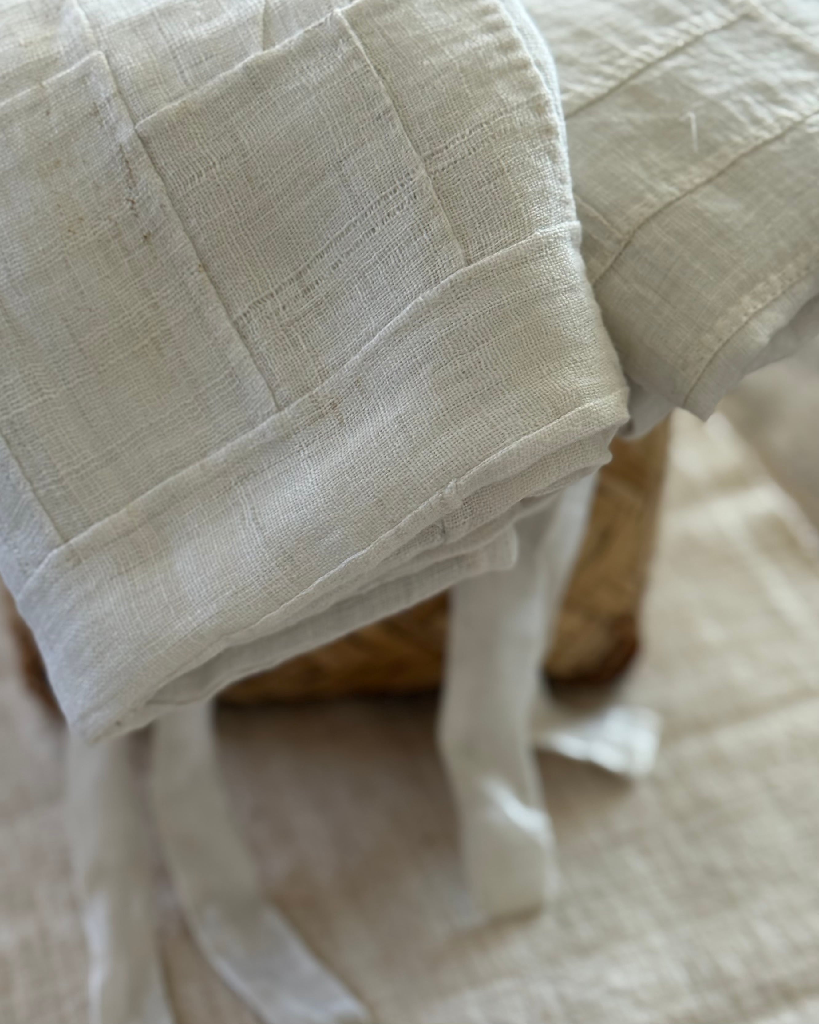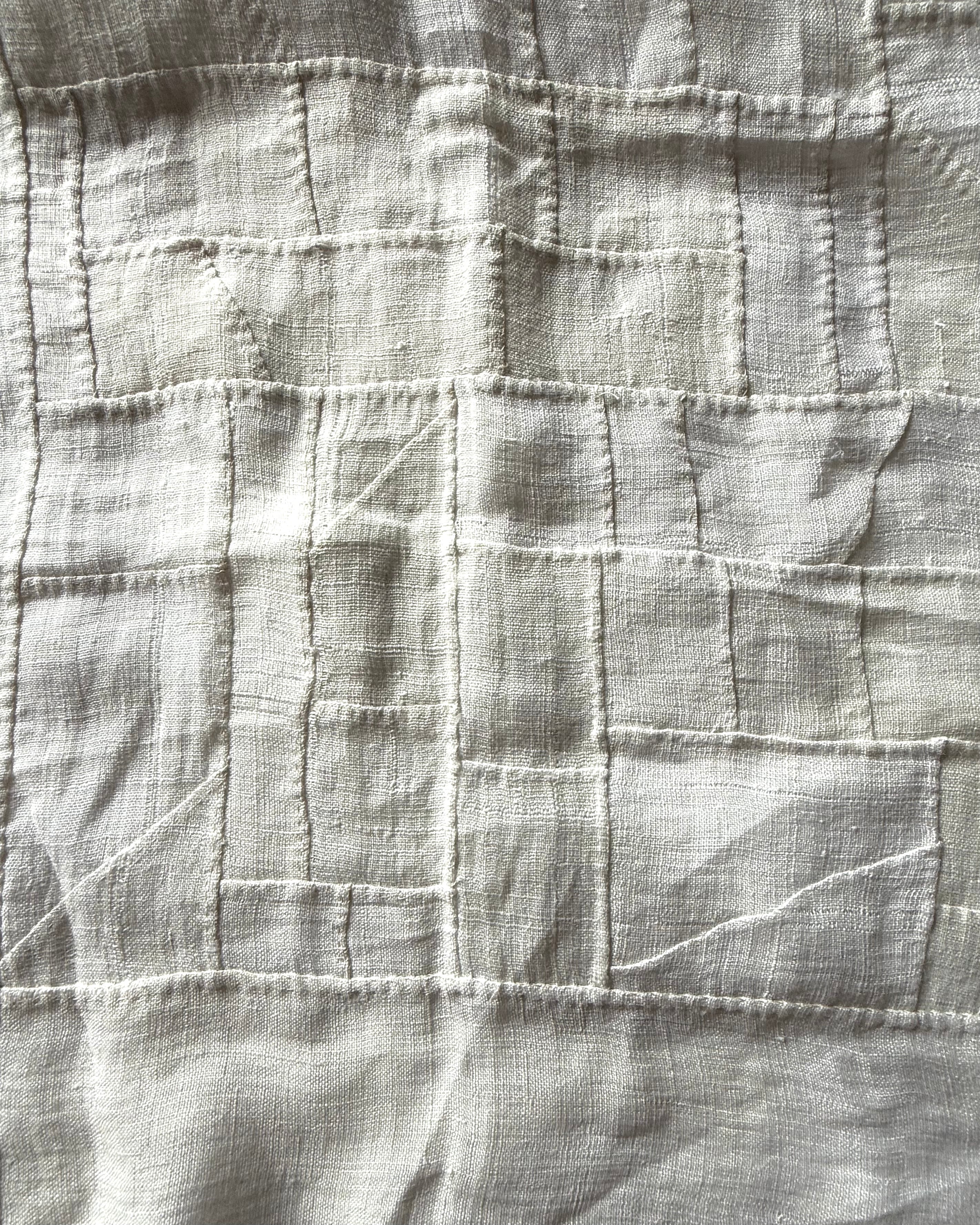 韓国の古い布をつないで仕立てた、生成色の裂き織りポジャギ