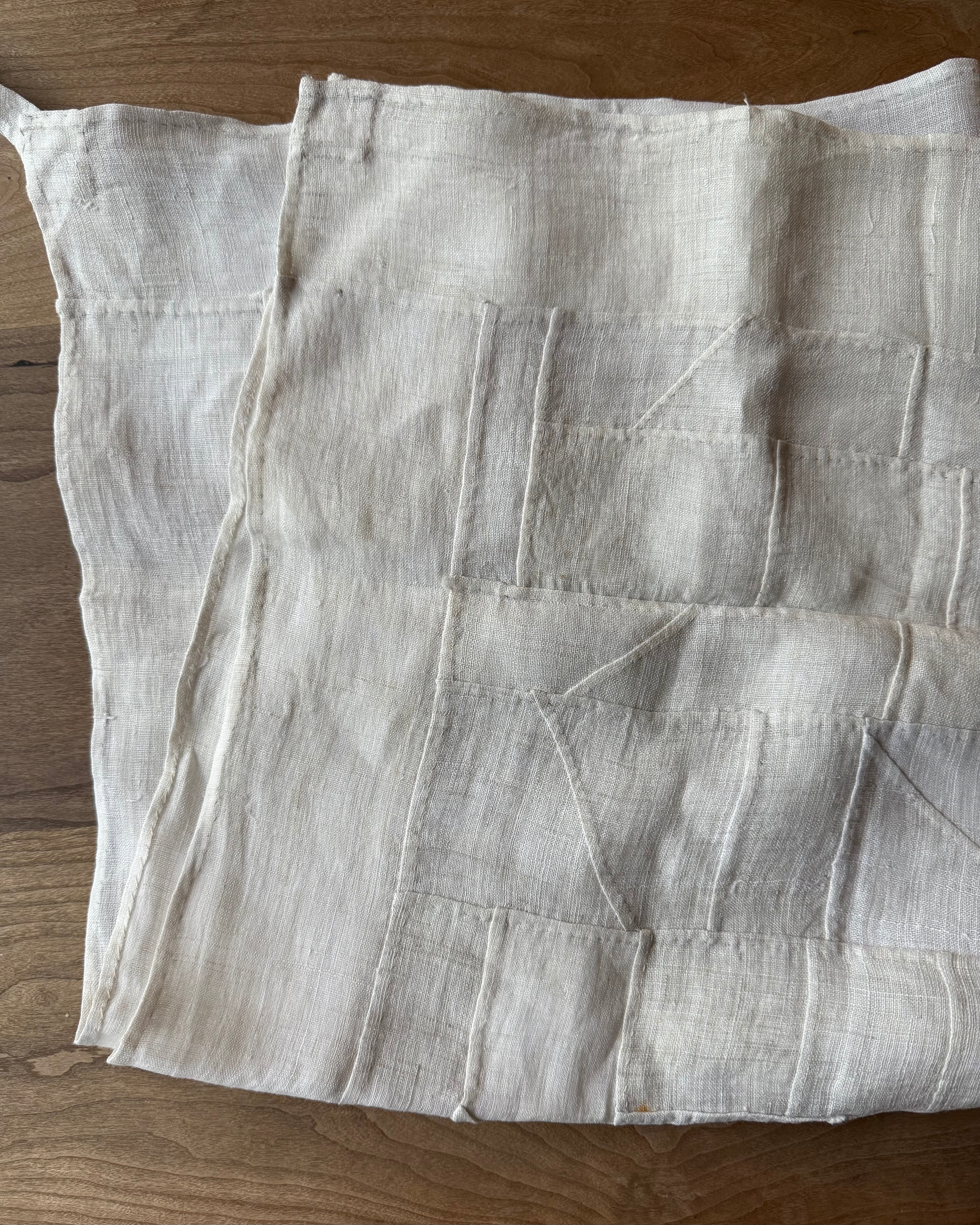 韓国の古い布をつないで仕立てた、生成色の裂き織りポジャギ